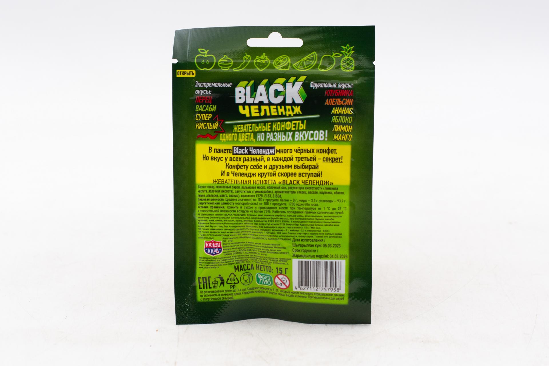 Жевательные конфеты Черный Челендж 13 гр14,51 руб. за штуку (в упак. 20 шт.) |
